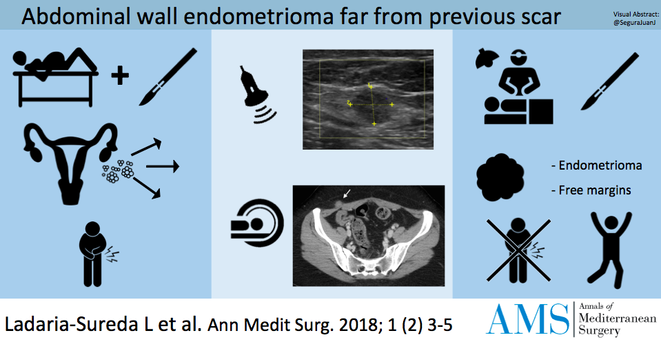 Endometriosis is defined by the presence of ectopic endometrial tissue that can respond to ovarian hormonal stimulation. Abdominal wall endometrioma prevalence is about 0.1-1%, the diagnosis can represent a challenge for the surgeon.